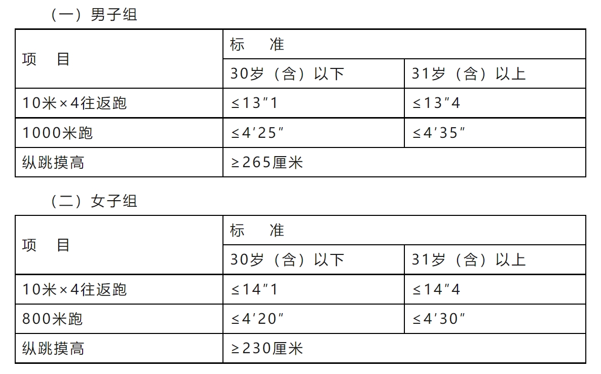 (三)測評標準中涉及的年齡計算時間截止到體能測評當(dāng)月。