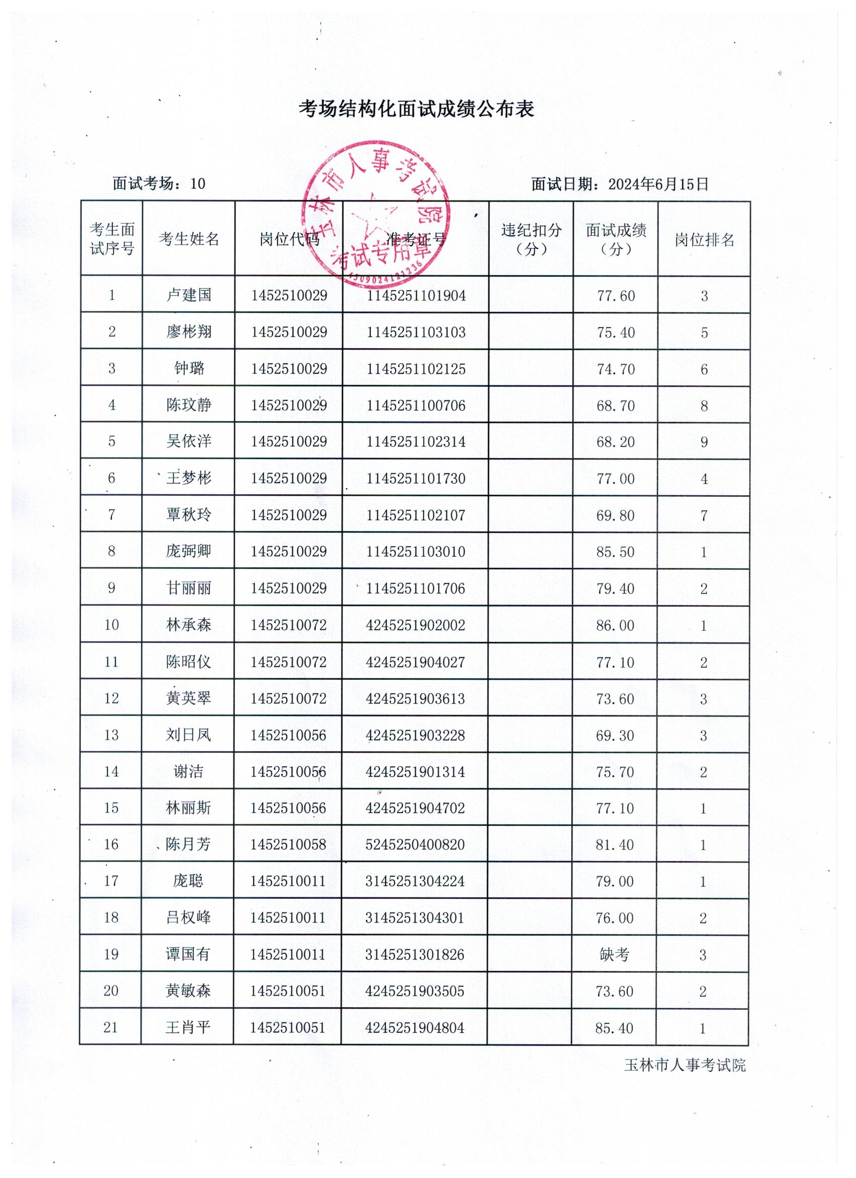 原文標(biāo)題:2024年玉林市直(含玉州區(qū)、福綿區(qū)、玉東新區(qū))事業(yè)單位公開招聘人員面試成績公布(6月15日)