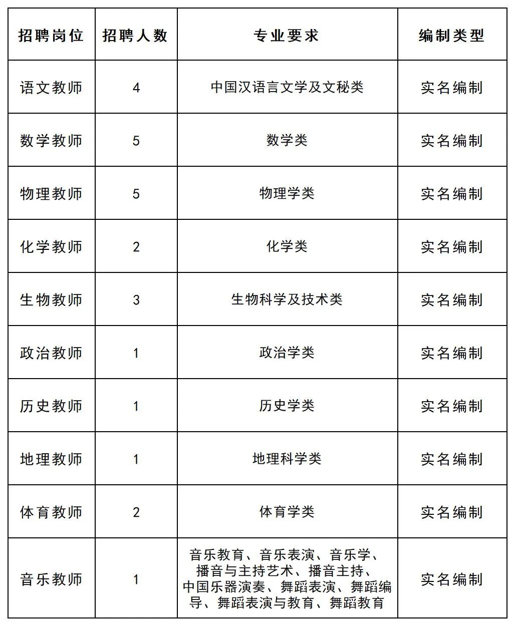 普通高校專業(yè)對口年齡35周歲以下具有相應(yīng)教師資格證的碩士研究生。