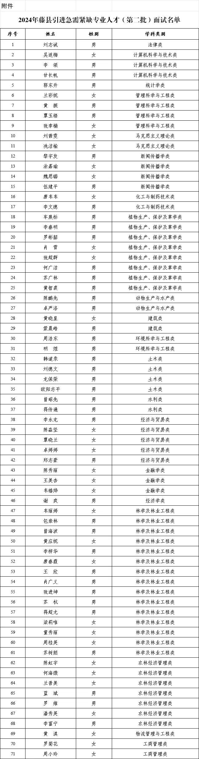 附件:2024年藤縣引進急需緊缺專業(yè)人才(第二批)面試名單