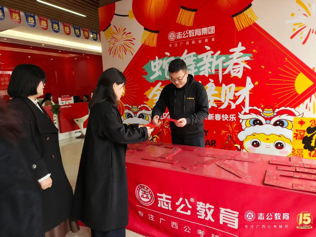 春節(jié)的喜慶氣氛猶在,而我們的心中早已裝滿了對(duì)未來(lái)的憧憬和期待。在未來(lái)的日子里,志公教育集團(tuán)將一如既往地秉承12條企業(yè)核心價(jià)值觀,為廣西公職教育提供良好的產(chǎn)品和服務(wù),實(shí)現(xiàn)企業(yè)使命——幫助人才實(shí)現(xiàn)更高質(zhì)量的就業(yè),為員工創(chuàng)造最具幸福感的企業(yè),用教育成就夢(mèng)想!相信在全體員工的共同努力下,志公教育一定能夠開(kāi)創(chuàng)更加輝煌的未來(lái)![]()