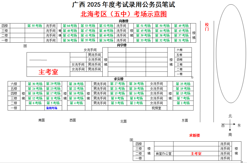 北??紖^(qū)共設(shè)置5個(gè)考點(diǎn),具體考點(diǎn)考場(chǎng)布置分別如下: