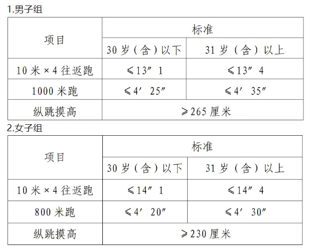 參加體能測(cè)評(píng)人員為筆試考試成績合格的考生。體能測(cè)評(píng)的標(biāo)準(zhǔn):參照《關(guān)于印發(fā)公安機(jī)關(guān)錄用人民警察體能測(cè)評(píng)項(xiàng)目和標(biāo)準(zhǔn)(暫行)的通知》(人社部發(fā)〔2011〕48號(hào))的標(biāo)準(zhǔn)。