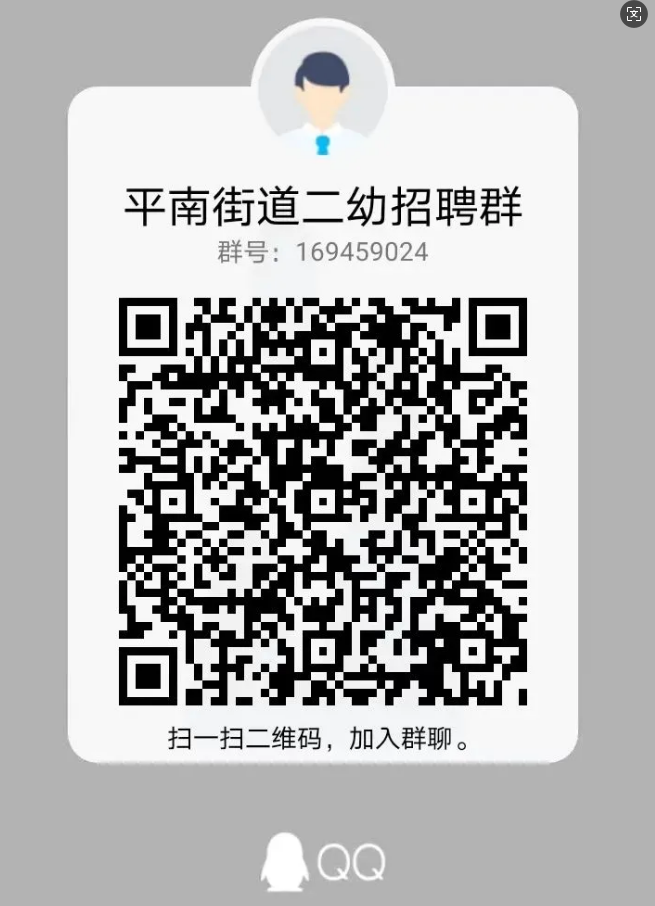 有意向者可以掃碼進(jìn)入平南街道二幼招聘群咨詢,入群請(qǐng)備注姓名。
