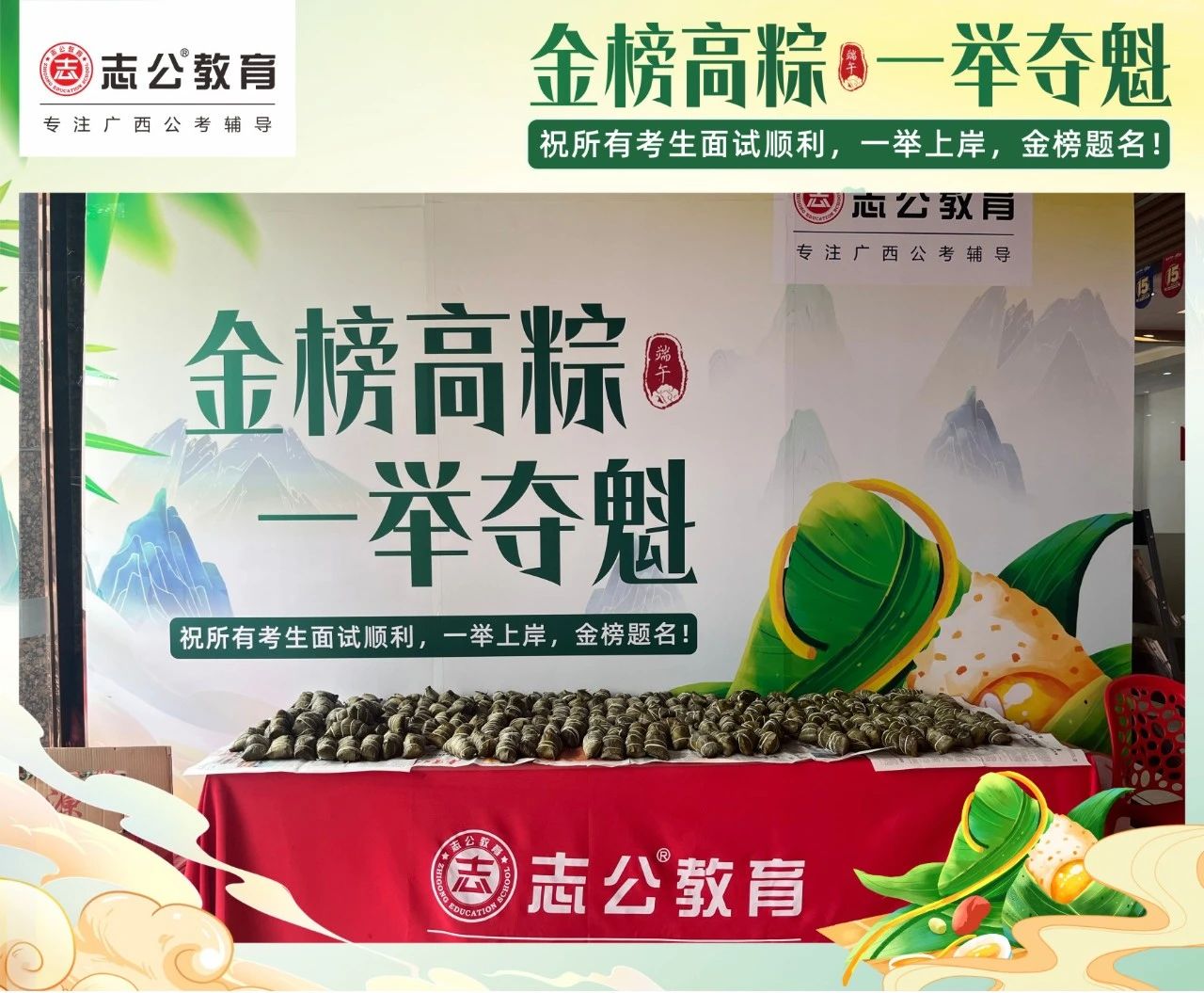 最后,再次祝愿大家端午節(jié)安康,六一兒童節(jié)快樂!愿志公教育每位員工在雙節(jié)的喜慶氛圍中,收獲滿滿,幸福常伴!也愿志公教育每位學(xué)員吃上粽子一舉高“粽”,實(shí)現(xiàn)自己的公職夢(mèng)想!