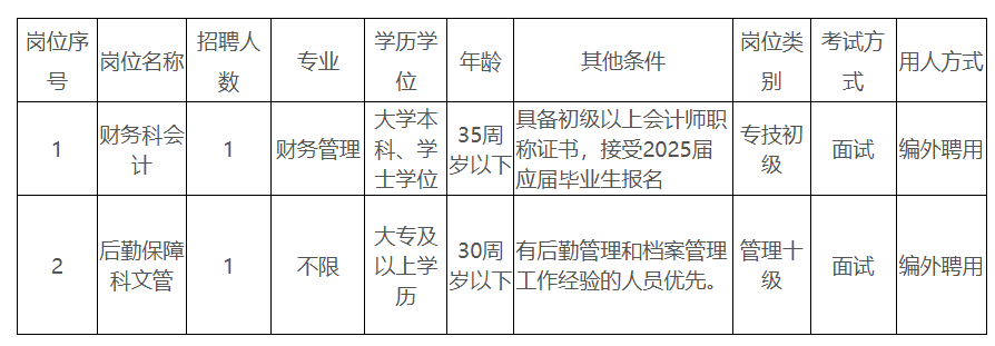 財(cái)務(wù)科會(huì)計(jì)1人,后勤保障科文管1人