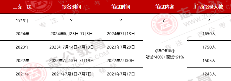 廣西什么時候出?正值畢業(yè)季,想必很多人想知道,根據(jù)下方圖片,廣西歷年三支一扶考試節(jié)點可知,三支一扶在六月底發(fā)公告,發(fā)布公告第二天開始報名,2024年招錄1650人,2023年招錄1750人,小志猜測,今年也就是2025年預計1700人。