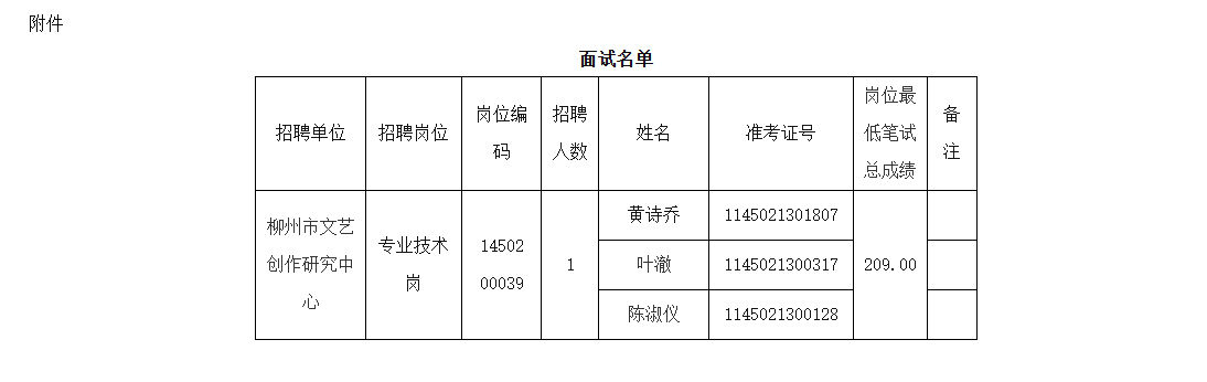 根據(jù)《廣西壯族自治區(qū)事業(yè)單位公開招聘人員實(shí)施辦法》(桂人社發(fā)〔2011〕155號(hào))、《廣西壯族自治區(qū)人力資源和社會(huì)保障廳關(guān)于印發(fā)廣西2025年度上半年事業(yè)單位統(tǒng)一公開招聘工作實(shí)施方案的通知》(桂人社發(fā)〔2025〕3號(hào))、《柳州市2025年度上半年事業(yè)單位公開考試招聘工作人員公告》等文件精神,柳州市文聯(lián)擬組織所屬事業(yè)單位柳州市文藝創(chuàng)作研究中心公招面試工作,現(xiàn)將相關(guān)事宜公告如下: