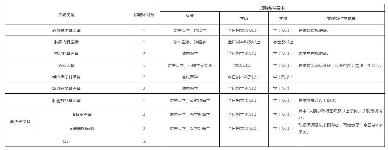 注:初中級(jí)職稱應(yīng)聘人員原則上年齡要求為35周歲及以下;如為副高以上職稱,年齡可放寬至45周歲;學(xué)歷層次高者優(yōu)先。醫(yī)師崗位中如要求具有規(guī)培證條件的是指已取得規(guī)培合格證書(含通過(guò)規(guī)培結(jié)業(yè)考試未領(lǐng)合格證書)或已取得中級(jí)及以上職稱人員。