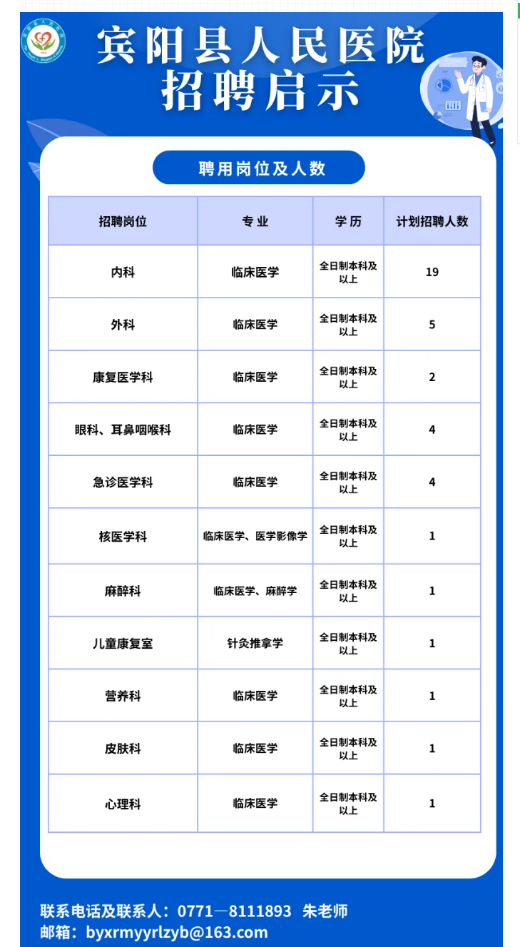 2025年賓陽縣人民醫(yī)院招聘若干人