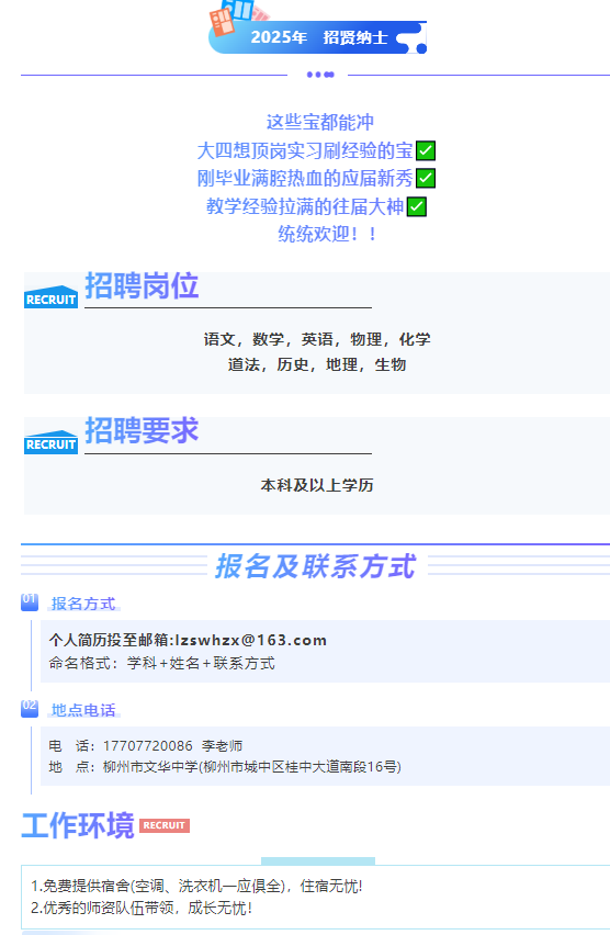 2025年柳州市文華中學(xué)教育集團(tuán)總部學(xué)院路校區(qū)招聘啟事