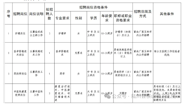 因工作需要,陸川縣橫山鎮(zhèn)衛(wèi)生院向社會公開招聘編外工作人員。具體招聘事宜如下: