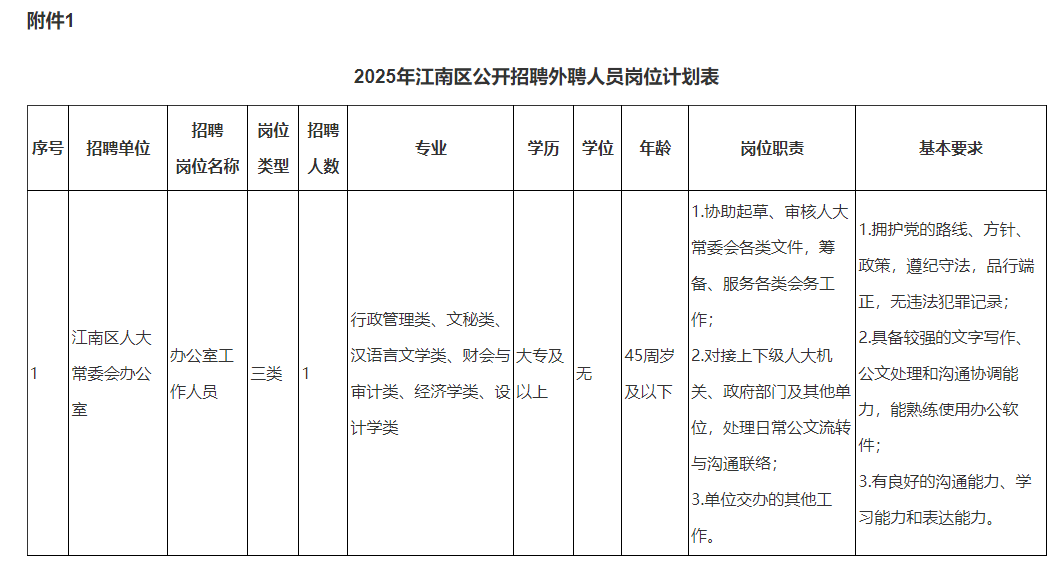 1.2025年江南區(qū)公開招聘外聘人員崗位計劃表