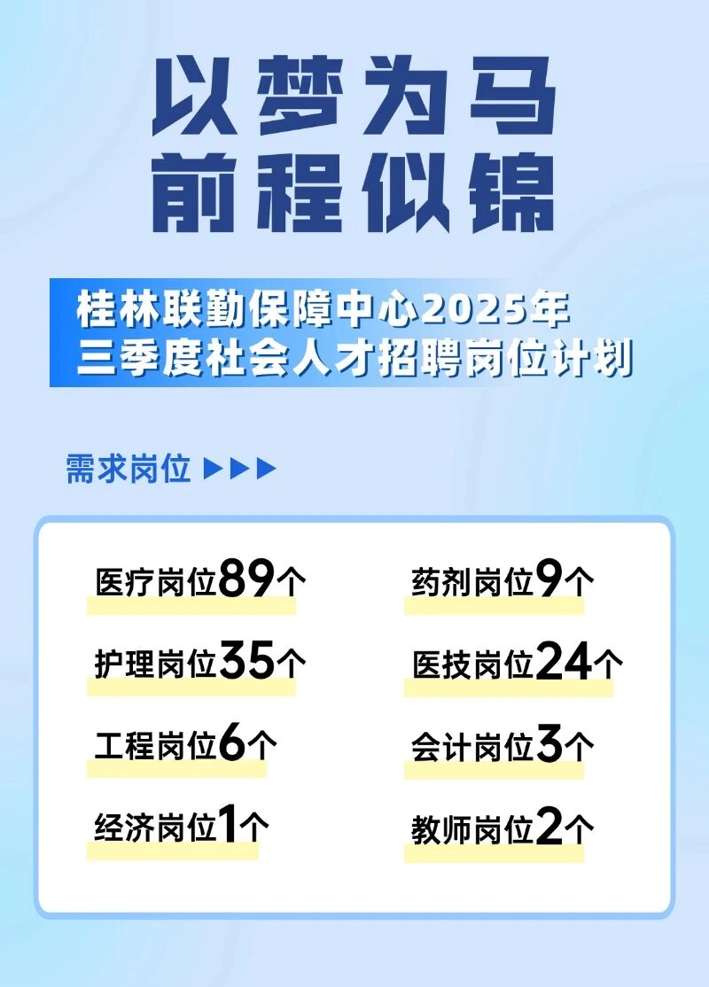 桂林聯(lián)勤保障中心2025年三季度社會(huì)人才招聘崗位計(jì)劃169個(gè)