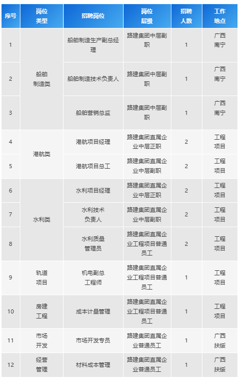 根據(jù)廣西路建集團(tuán)發(fā)展需要,現(xiàn)面向社會(huì)公開招聘關(guān)鍵崗位人才,誠邀有志之士與廣西路建集團(tuán)共創(chuàng)美好未來。