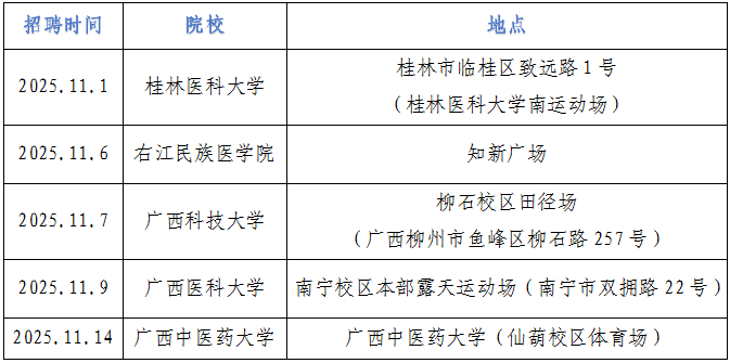 三、廣西各醫(yī)學院校雙選會舉辦時間、地點
