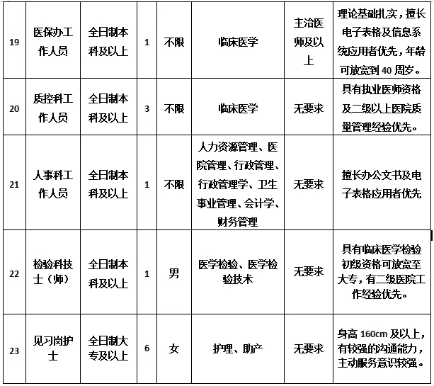 (三)面試時間及所需材料:資格審查通過后,將組織面試,具體時間以正式通知為準。未入圍者,將不再另行通知。面試時,需攜帶身份證、畢業(yè)證、執(zhí)業(yè)證、資格證等原件進行核驗。