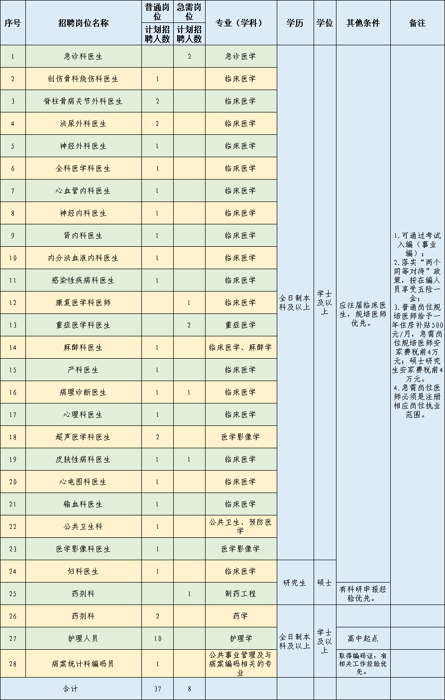 2.具有規(guī)培合格證的醫(yī)生依照國(guó)衛(wèi)辦科教發(fā)〔2021〕18號(hào)文件,落實(shí)“兩個(gè)同等對(duì)待”政策,即“面向社會(huì)招收的普通高校應(yīng)屆畢業(yè)生培訓(xùn)對(duì)象培訓(xùn)合格當(dāng)年在醫(yī)療衛(wèi)生機(jī)構(gòu)就業(yè)的,在招聘、派遣、落戶等方面,按當(dāng)年應(yīng)屆畢業(yè)生同等對(duì)待。對(duì)經(jīng)住培合格的本科學(xué)歷臨床醫(yī)師,在人員招聘、職稱晉升、崗位聘用、薪酬待遇等方面,與臨床醫(yī)學(xué)、中醫(yī)專業(yè)學(xué)位碩士研究生同等對(duì)待”。普通崗位規(guī)培醫(yī)師給予一年住房補(bǔ)貼500元/月,急需崗位規(guī)培醫(yī)師安家費(fèi)稅前4萬(wàn)元,急需崗位醫(yī)師必須注冊(cè)相應(yīng)崗位執(zhí)業(yè)范圍。