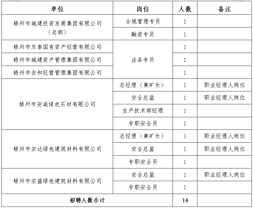 崗位要求詳見《梧州市城投集團(tuán)招聘計(jì)劃表》(附件1)。