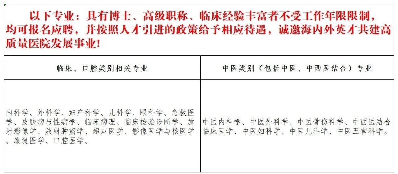 (一)高層次人才專業(yè)招聘需求表