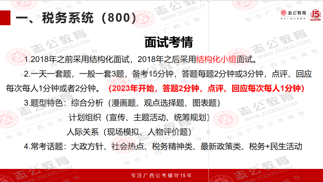 國(guó)考面試?yán)铮悇?wù)系統(tǒng)的題目一直有個(gè)很明顯的特點(diǎn),就是緊跟國(guó)家政策、貼近實(shí)際工作。尤其是2024年廣西稅務(wù)局的面試題,把這個(gè)特點(diǎn)體現(xiàn)得特別透徹。看這些題目,既能知道稅務(wù)工作實(shí)際需要什么樣的人、做什么樣的事,也能清楚面試到底要考察我們哪些核心能力。今天小志就帶大家了解一下,國(guó)考中稅務(wù)系統(tǒng)面試一些相關(guān)信息解讀: