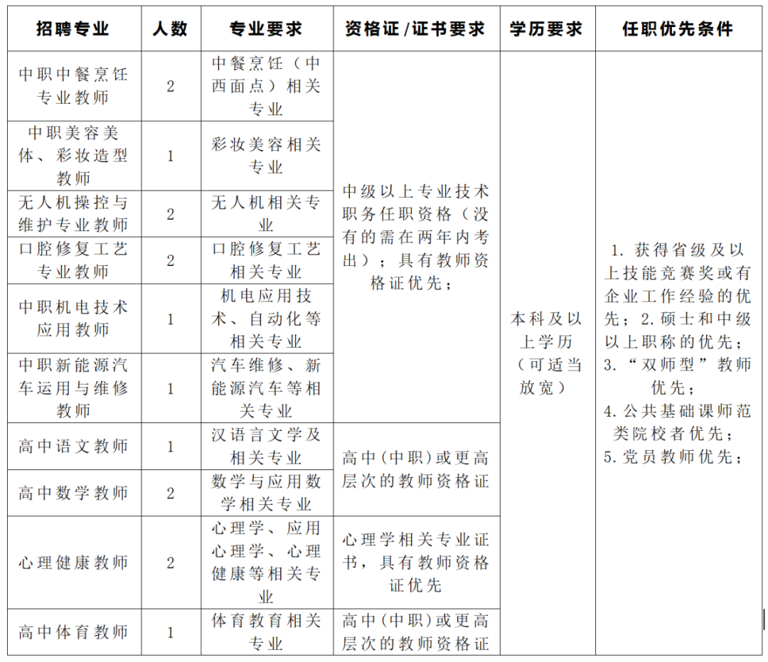 (1)中級及以上職稱,具有教研組組長等管理經(jīng)歷,具備專業(yè)建設組織領導與管理能力,碩士學歷的優(yōu)先;
