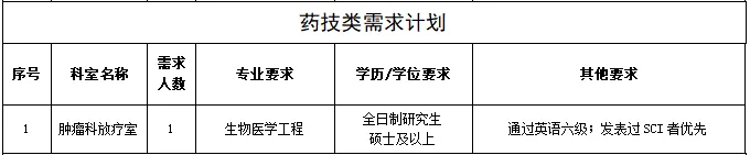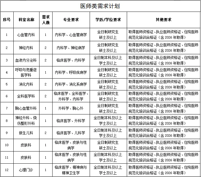為進(jìn)一步完善現(xiàn)有人才隊(duì)伍,促進(jìn)醫(yī)院學(xué)科發(fā)展,提升醫(yī)院綜合實(shí)力,因業(yè)務(wù)發(fā)展需要,現(xiàn)面向社會(huì)進(jìn)行公開(kāi)招聘,具體招聘崗位如下: