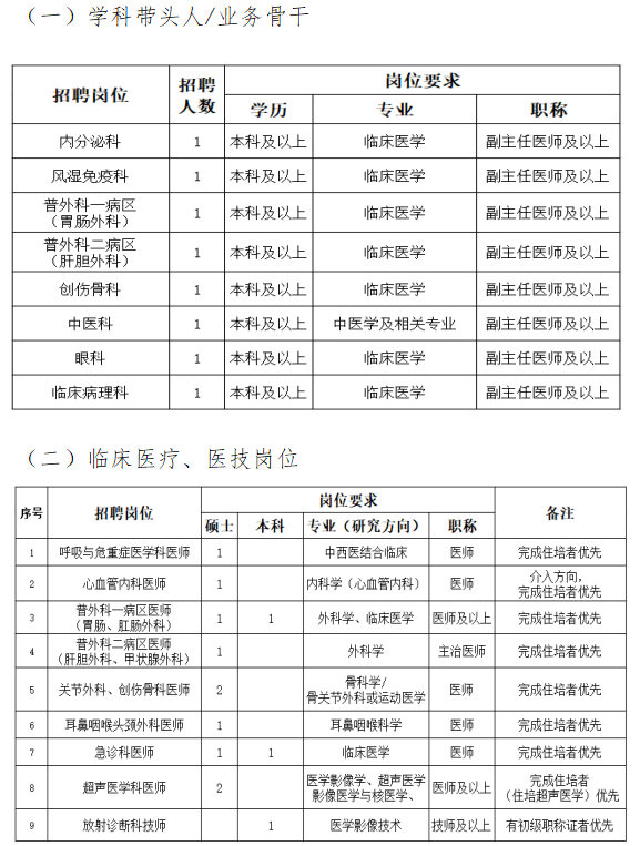 根據(jù)醫(yī)院發(fā)展需要,現(xiàn)面向社會招聘臨床崗位各層次人才,有關(guān)招聘事項(xiàng)公告如下: